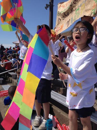 Ms. Hantman’s 3rd graders from McCall School were passionate about celebrating the amazing skills on display at Northeast High School for the recent Special Olympics Pennsylvania – Philadelphia Soccer Tournament where Philadelphia students with intellectual disabilities competed for prizes. The Need in Deed 3rd graders are winding down their service learning project on Special Needs Populations. Among so many other things they want to do, they knew the local Special Olympics event needed a great cheering section. They wrote cheers, made banners and designed their own tee-shirts. Ms. Bottaro’s 5th graders even helped make pom poms out of used plastic bags as part of their efforts to reduce plastic bag waste! Finally the day arrived. We know it’s hard to imagine how great it was, so we took lots of pictures to help you celebrate with us.